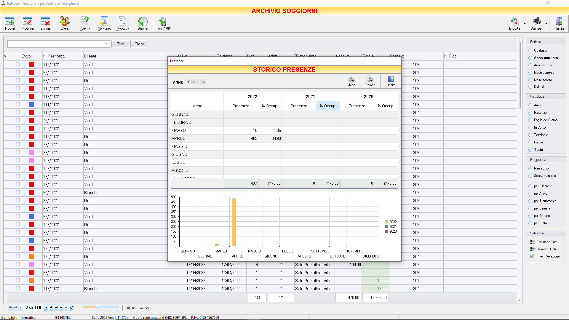 | Rappresentazione Grafica (planning) ed analitica delle prenotazioni |