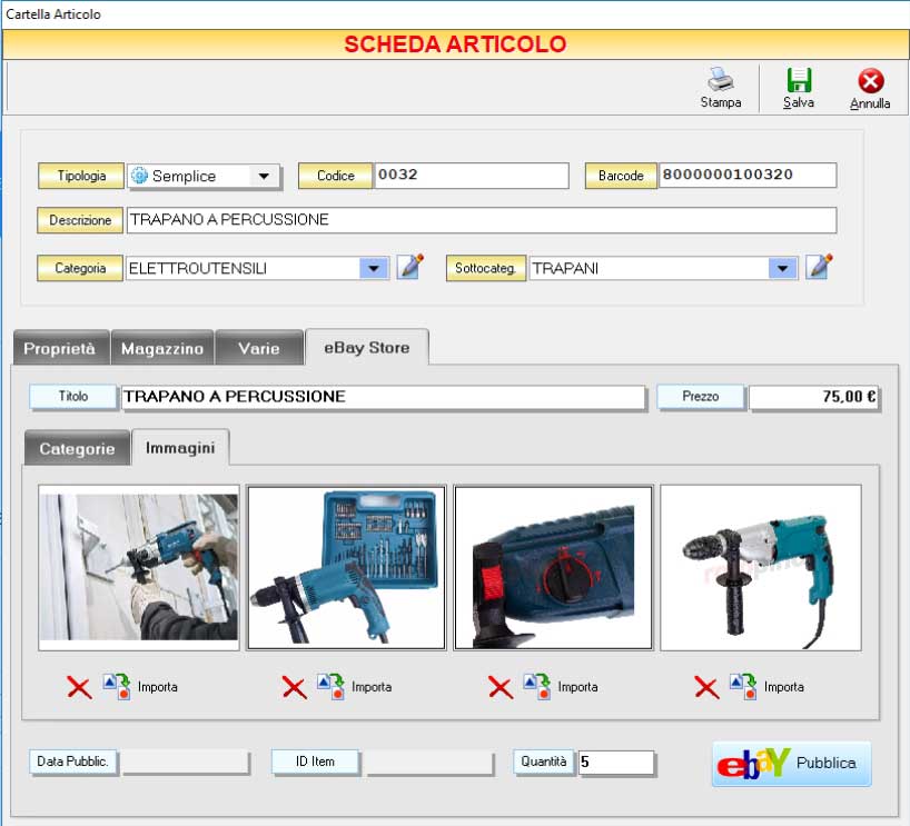 - inserzioni programmate: chi utilizza eBay come strumento professionale, può avere l’esigenza di programmare le proprie inserzioni; questa opzione ha un costo di 0,20 € per inserzione;